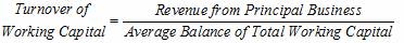 In the above formula, average balance of total working capital refers to the arithmetic mean of the sum of circulating funds at the beginning and at the end of the reference period.