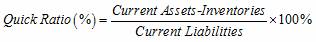 refers to the ratio of quick assets and current liabilities, which is used to measure the enterprise’s ability to turn the current assets into cash immediately to repay its current liabilities. It is calculated as follows: