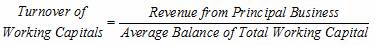 In the above formula, average balance of total working capital refers to the arithmetic mean of the sum of circulating funds at the beginning and at the end of the reference period.