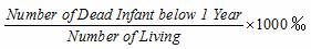 refers to the ratio of the number of dead infant below 1 year to the number of living in one year. The following formula is used:
