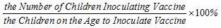refers to the ratio of the number of children inoculating vaccine in accordance with the degree of immunity to the children on the age to inoculate vaccine. The children on the age to inoculate vaccine include the children avoiding inoculating vaccine and living in some other places for 3 and more than 3 months, but exclude the children on age going out for 3 months. The following formula is used: