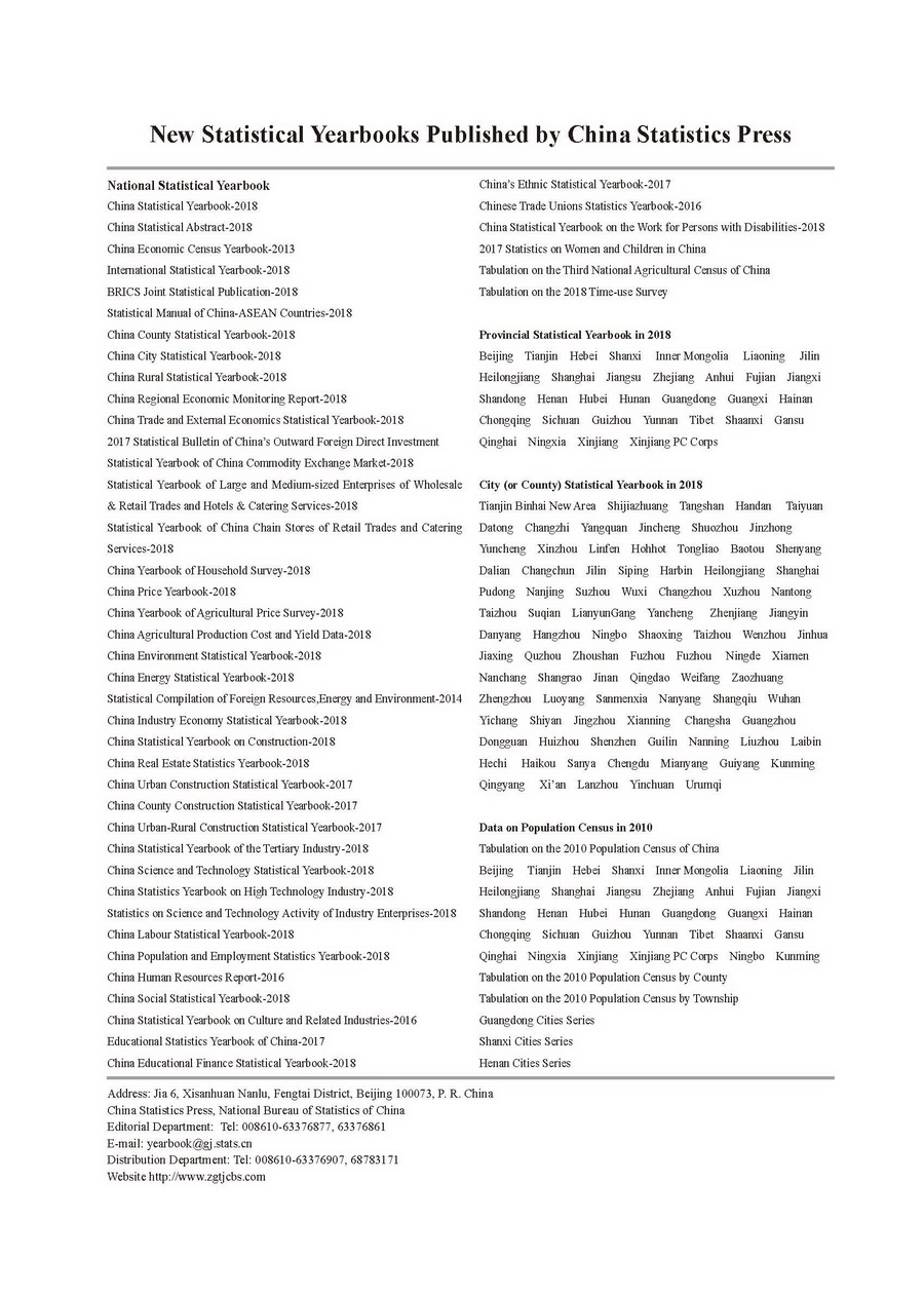 New Statistical Yearbooks Published by China Statistics Press