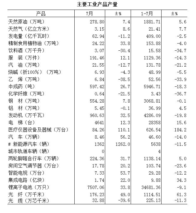> 工业产品产量